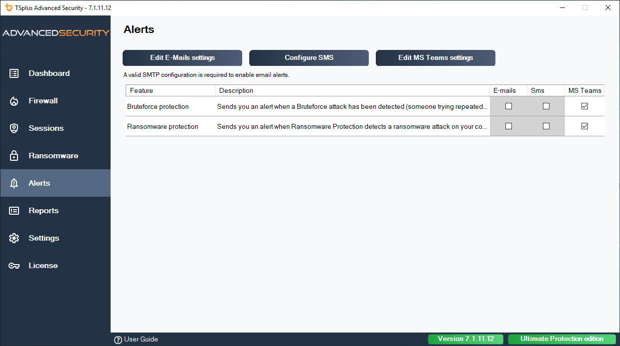 Be alerted in real-time. Configure your SMTP settings for TSplus Advanced Security to send you email alerts to highlight important security events.